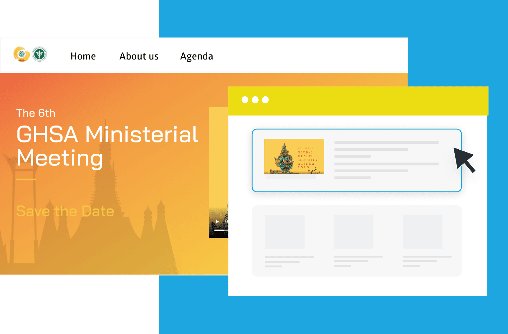 ไม่ต้องเริ่มสร้างจากศูนย์ เรามีเทมเพลตที่สามารถปรับแต่งให้เหมาะกับงานอีเวนต์ของคุณ ทั้งเนื้อหาบนเว็บไซต์ แบบฟอร์มลงทะเบียน กราฟฟิก สีองค์กร รวมถึงชื่อโดเมนสำหรับงานอีเวนต์คุณโดยเฉพาะ สามารถรับชมได้ทุกอุปกรณ์ ทั้งบนสมาร์ตโฟน แท็บเล็ต และเดสก์ท็อป เชื่อมต่อกับระบบลงทะเบียนงานอีเวนต์ ระบบ RSVP และระบบอื่นๆ ได้ง่าย ออกแบบมาให้คุณเก็บข้อมูลที่คุณต้องการได้ครบถ้วนและรวดเร็วที่สุด