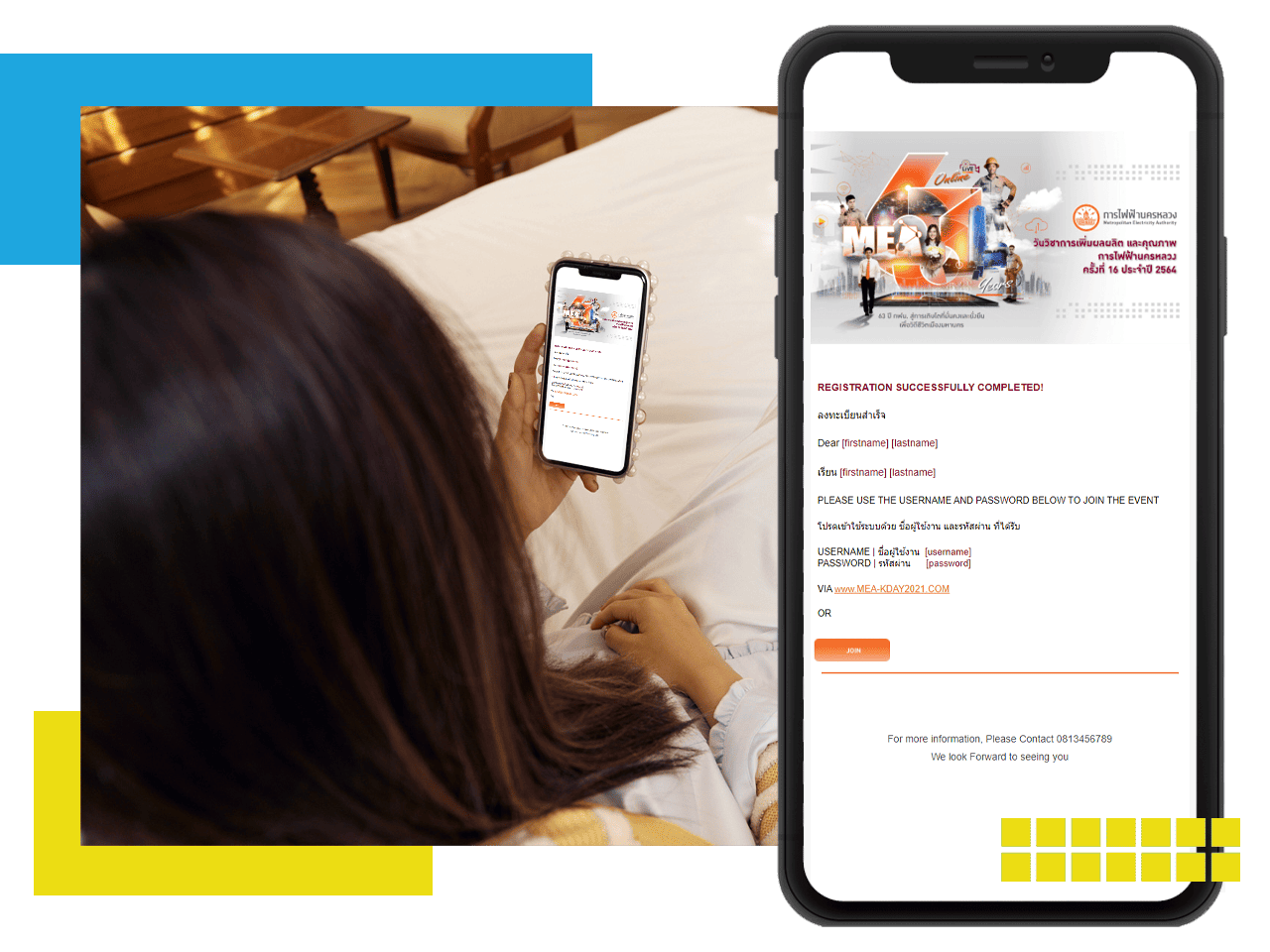 เราอยากให้คุณโฟกัสกับการสร้างงานอีเวนต์ ได้ออกไปพูดคุยพบปะกับผู้เข้าร่วมงาน ลูกค้า และแฟนๆของคุณ สานสัมพันธ์และสร้างการมีส่วนร่วม ส่วนเรื่องการจัดการงานอีเวนต์เราขอรับผิดชอบเอง